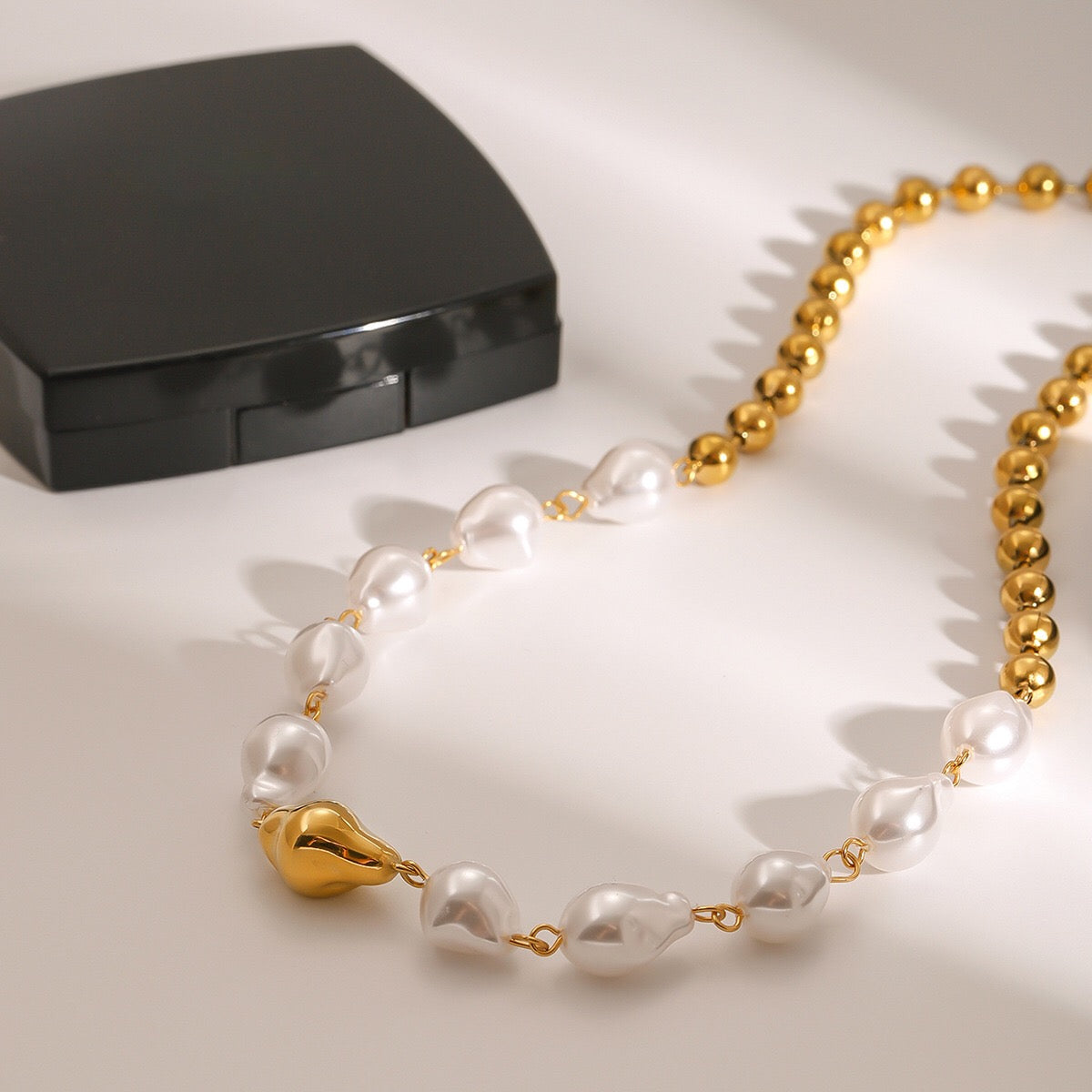 Make a bold statement with this 18K Gold Chunky Baroque Pearl Ball Chain Necklace. Luxuriously chic and trendy, it’s the perfect gift to dazzle your wife or mom. Waterproof and tarnish-free, this must-have accessory keeps its shine no matter where life takes you. Add a playful touch of elegance to any outfit—shop now and sparkle with confidence!