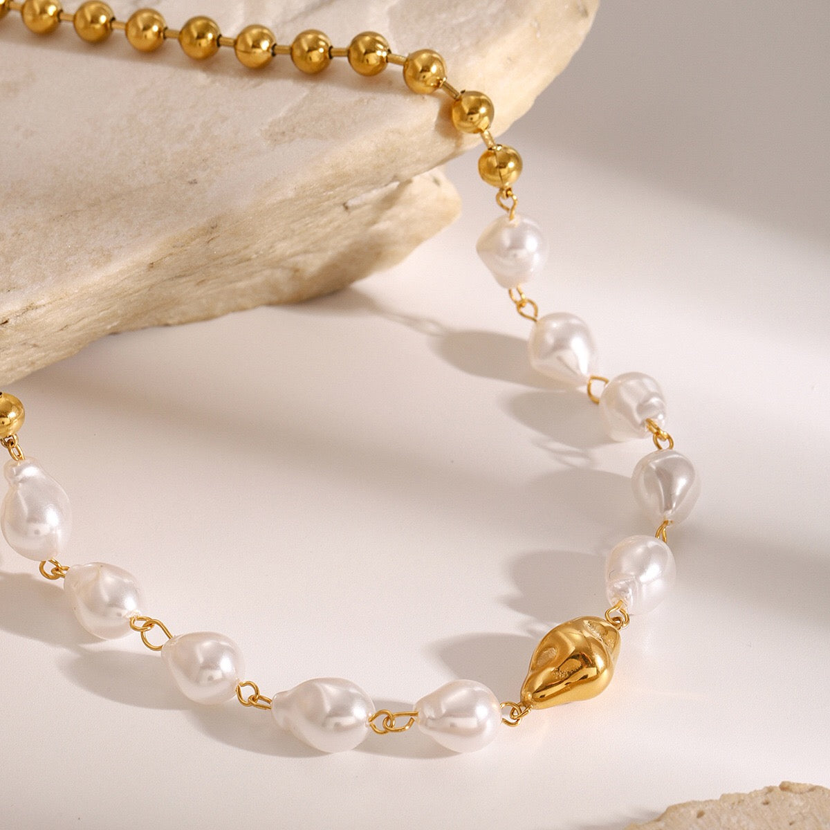 18K Gold Chunky Baroque Pearl Ball Chain Beaded Statement Necklace