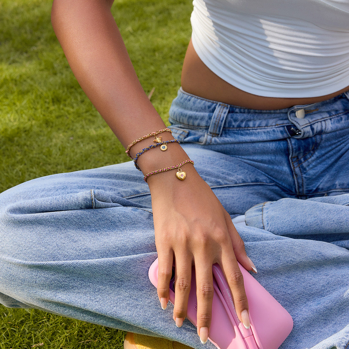 Stay cozy and chic this fall and winter with the 18K Gold Cozy String Chain Dainty Charm Bracelet. Tarnish-free and effortlessly stylish, itās the perfect gift to warm your wifeās heart. A must-have accessory that adds a playful touch to any seasonal outfit. Shop now and embrace the seasonās sparkle!