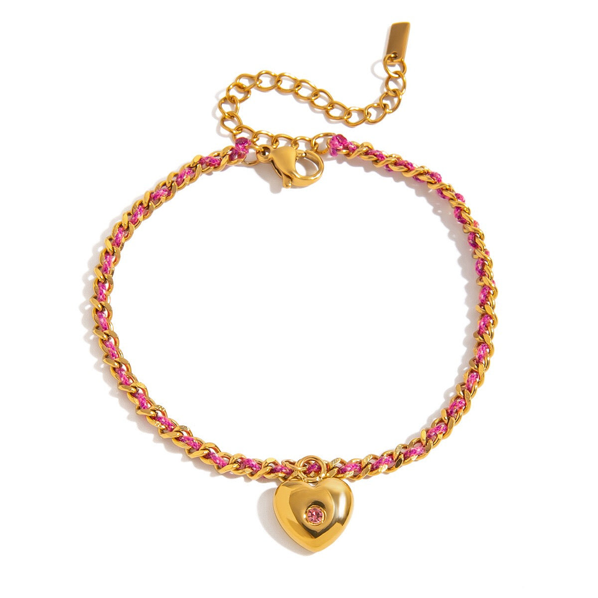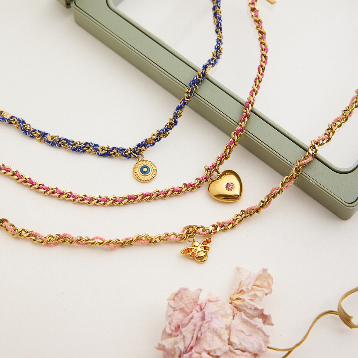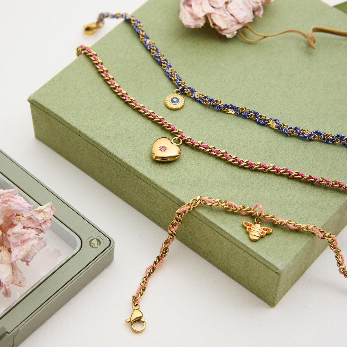 18K Gold Cozy String Chain Dainty Charm Bracelet