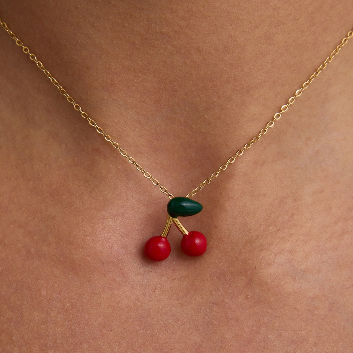 18K Gold Dainty Cherry Pendant Cute Choker Necklace