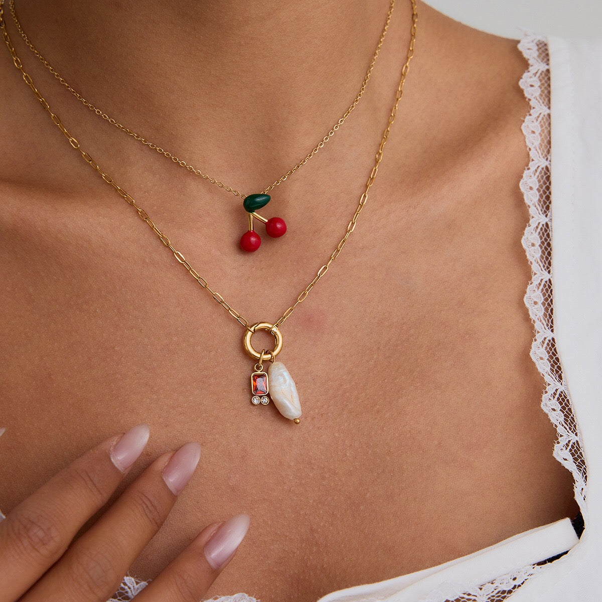 This 18K Gold Dainty Cherry Pendant Choker is super chic and trendy, adding a playful touch to any outfit. Crafted to be waterproof and tarnish-free, itās perfect for layering and mixing styles without worry. A lovely gift idea for your bestie who loves cute, durable jewelry. Grab yours now and sparkle with style!
