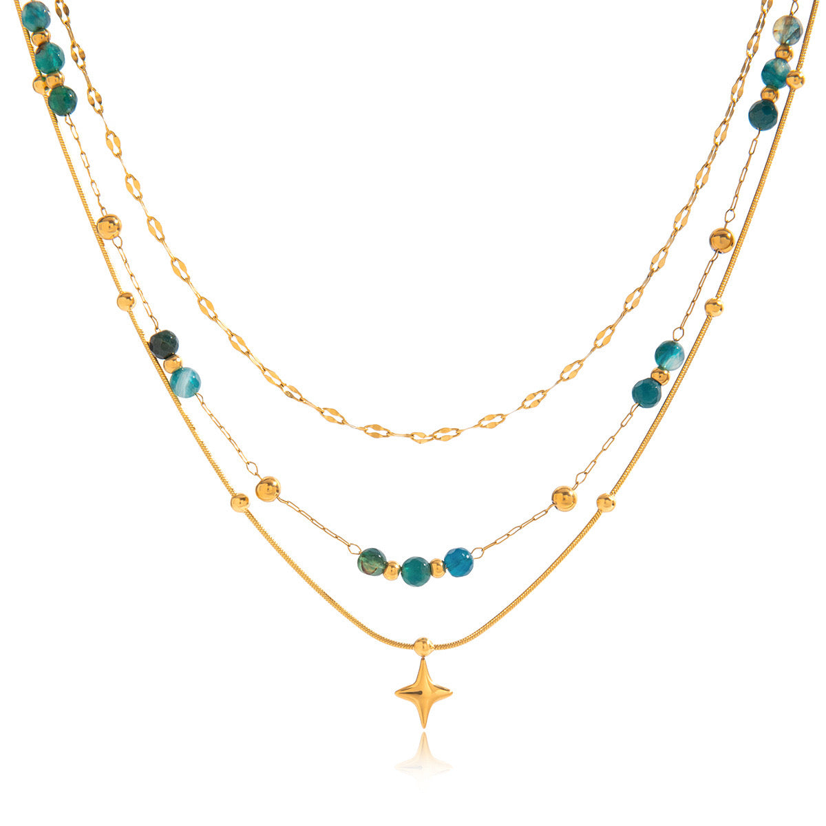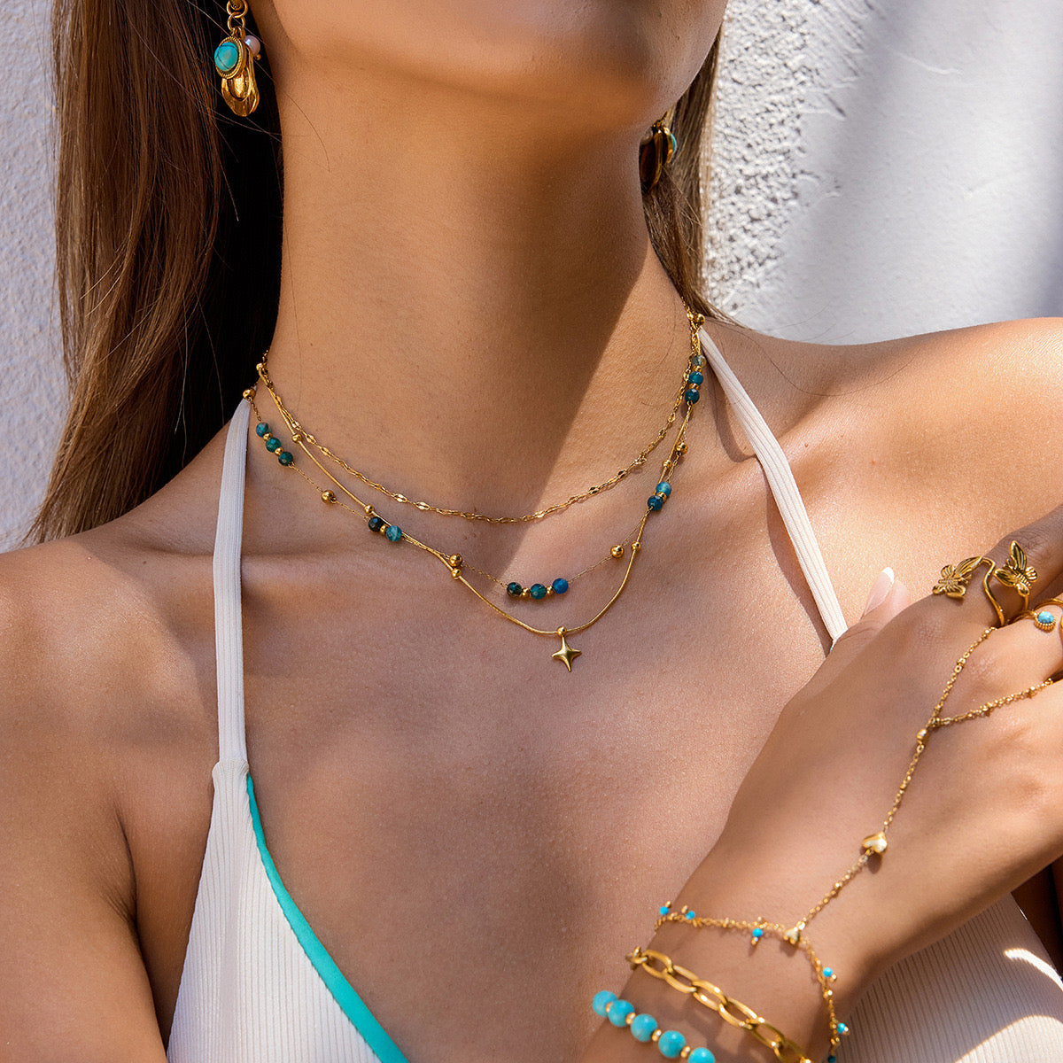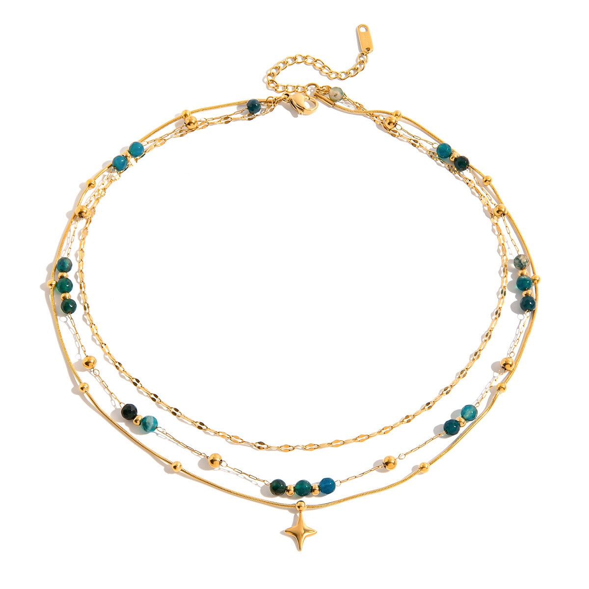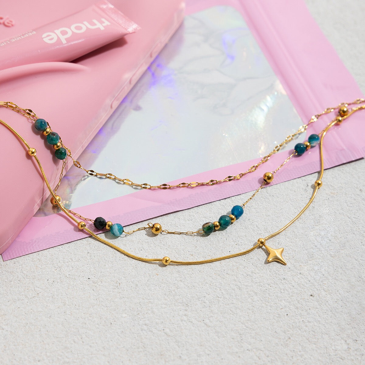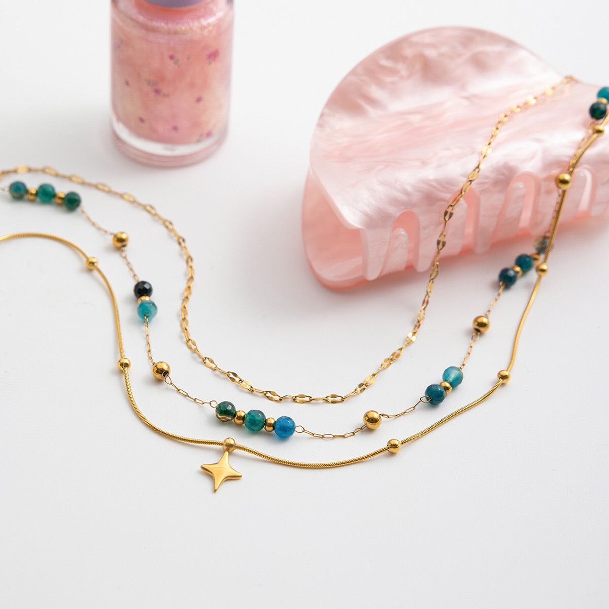 18K Gold Dainty Star Pendant Ocean Blue Beaded Layered Necklace Set