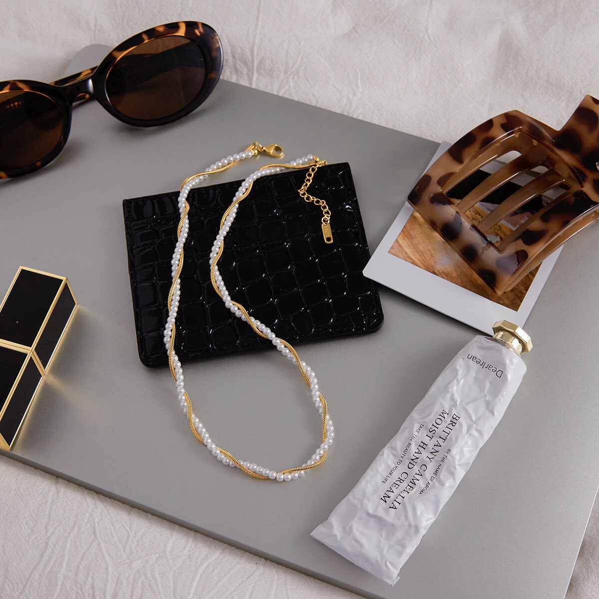 Elevate her style with this 18K Gold Divine Pearl Herringbone Snake Chain Necklace Setāwhere elegance meets trendiness! Waterproof and tarnish-free, it stays radiant no matter the occasion. Perfectly chic and classy, itās the dazzling gift your wife will adore. Shop now and watch her shine!