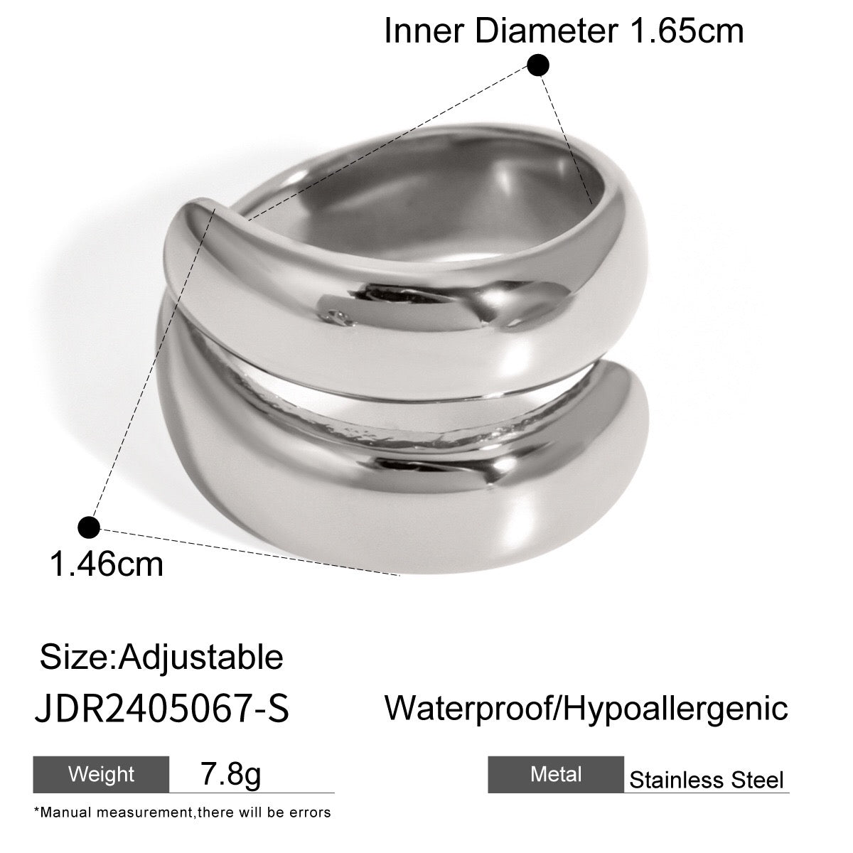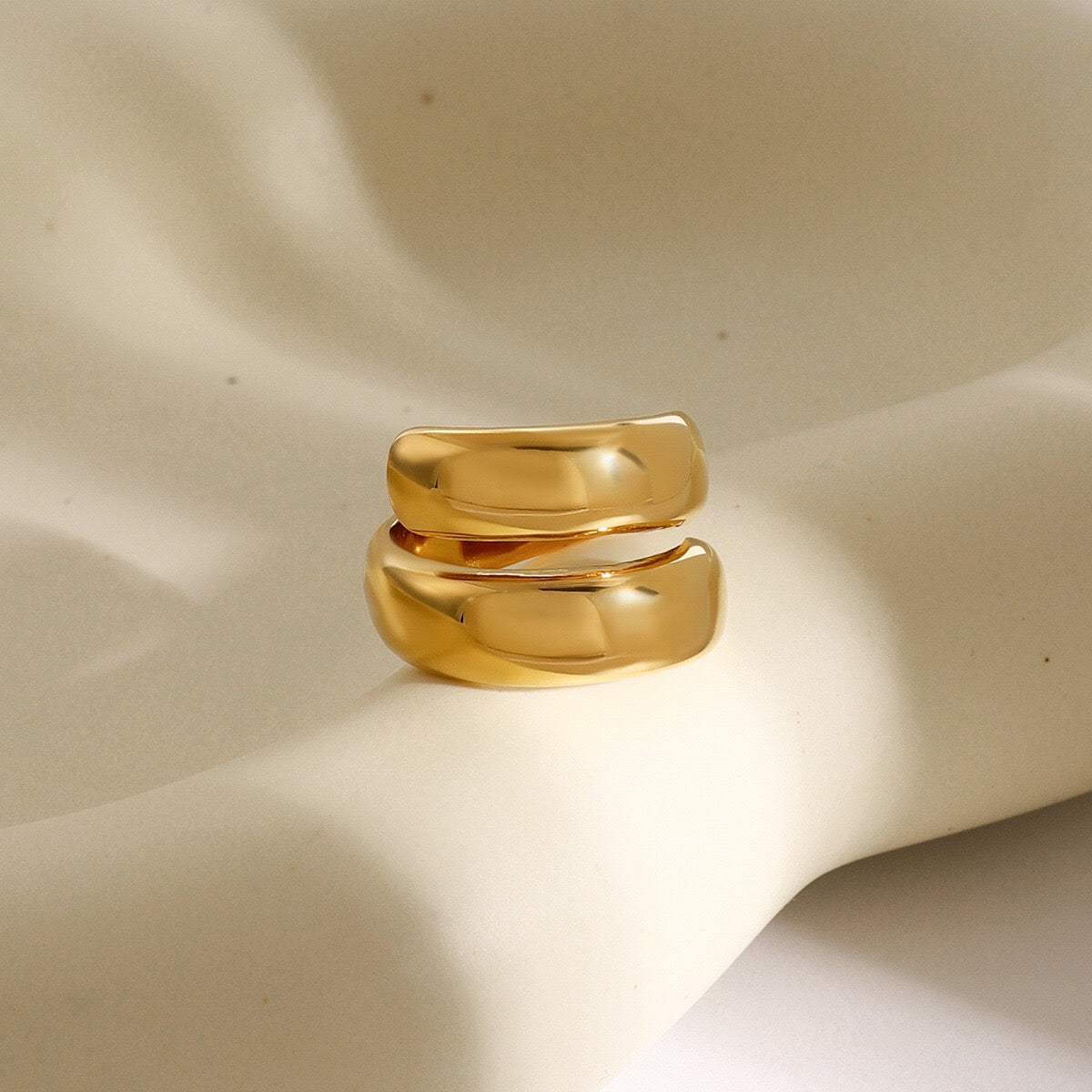 Upgrade your jewelry game with our 18K Gold Double Band Ring. This statement piece is both chic and versatile, available in silver and gold. Plus, its adjustable size makes it a must-have for any fashion-forward individual. Shop now and elevate your style!