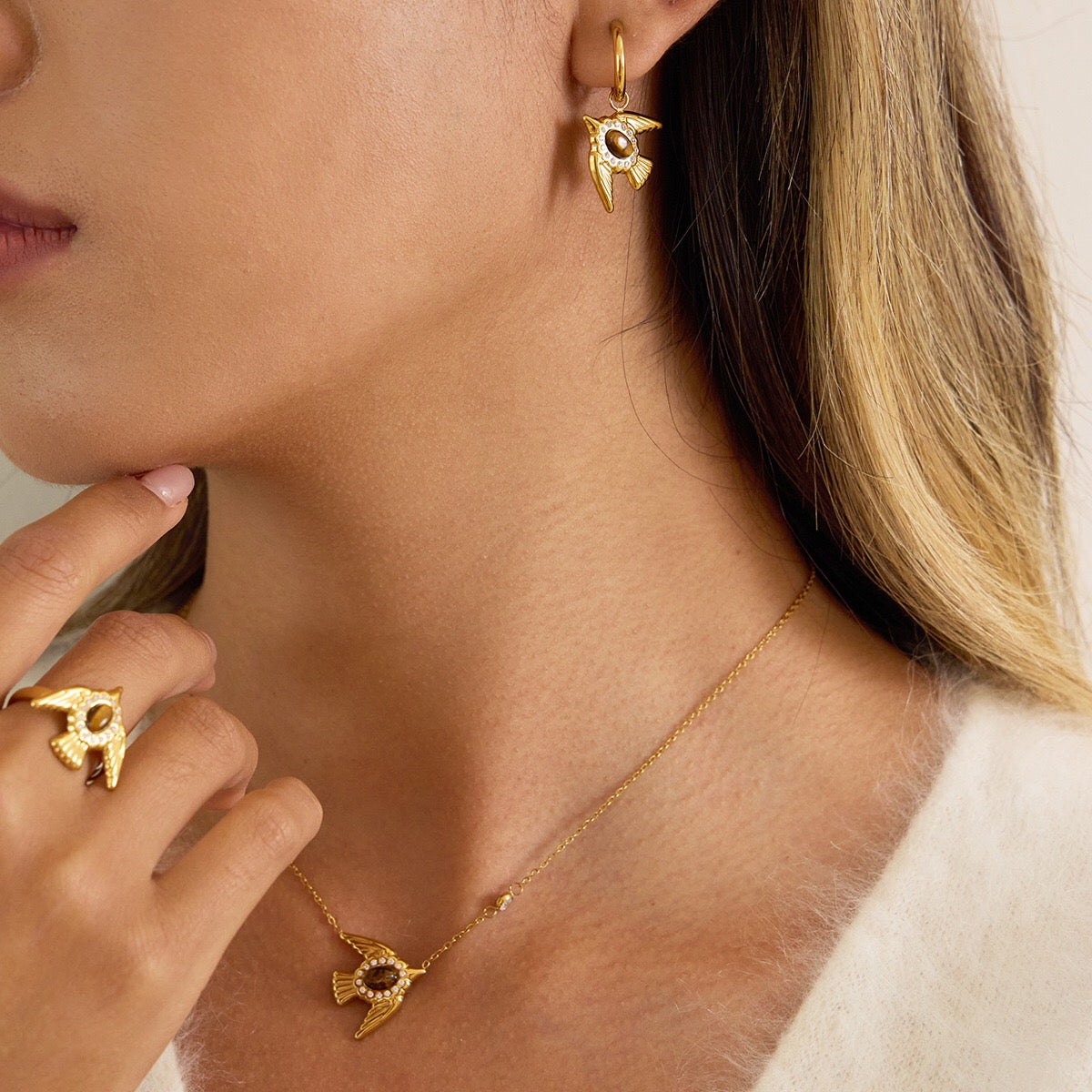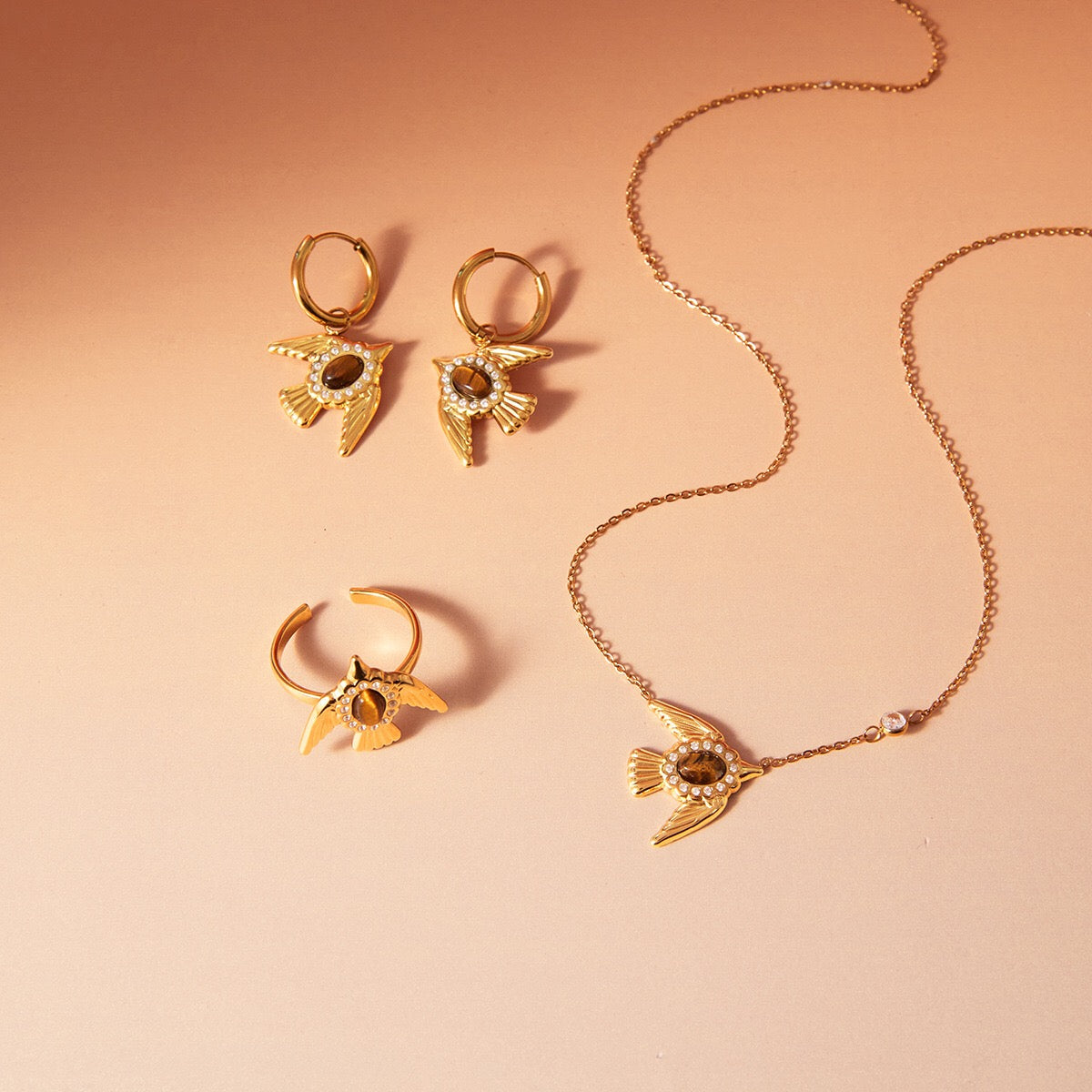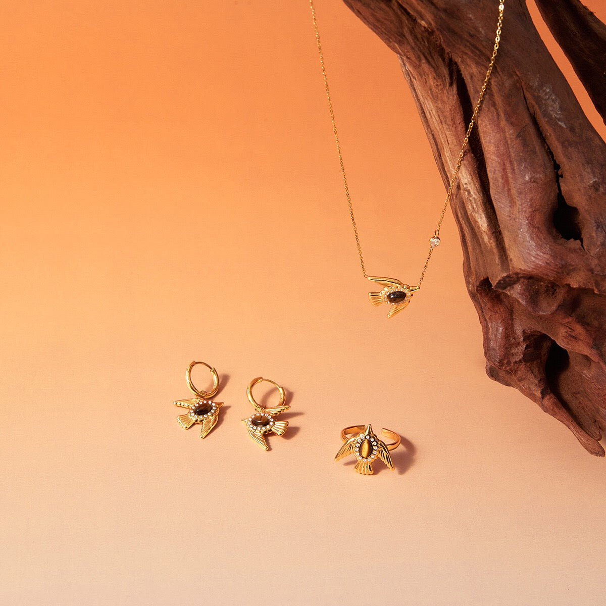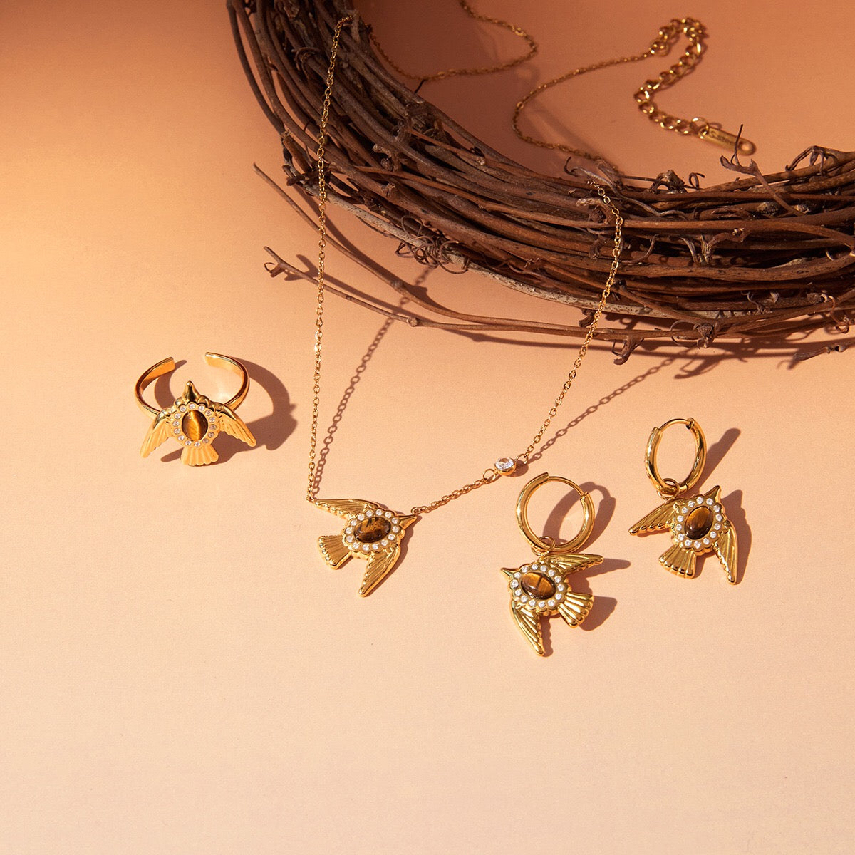 Make a gorgeous statement with this chic tiger eye bird ring that celebrates freedom and natural beauty. The striking combination of warm tiger eye stone and 18K gold creates a trendy, eye-catching design that feels both artistic and wearable. The bird motif symbolizes liberation and grace, adding meaningful depth to this stunning piece. Waterproof and non-tarnish technology ensures it maintains its radiant glow through daily wear and special occasions alike. Perfect as part of a complete jewelry set or worn solo for maximum impact, this is the ideal gift for your motherāa piece that honors her spirit while delivering timeless elegance and undeniable style.