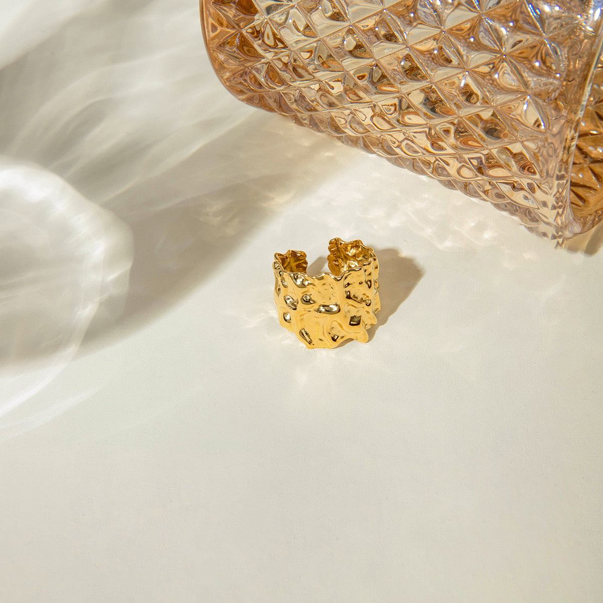 Make a bold statement with the 18K Gold Hammered Texture Statement Band Ring. Super chic and gorgeously crafted, it exudes luxury and elegance. Waterproof and tarnish-free, it’s the perfect gift to dazzle your wife. Shop now and add a touch of stunning sophistication to her collection!