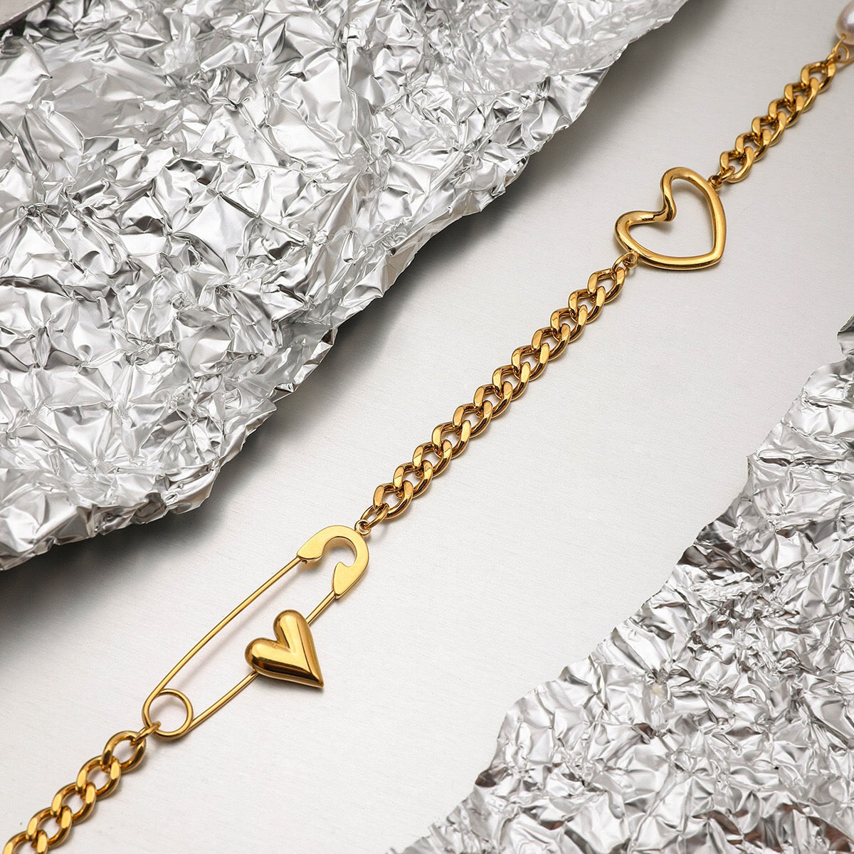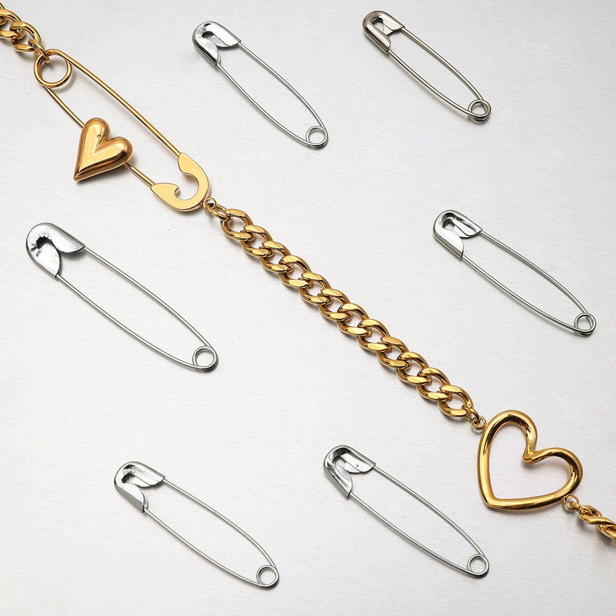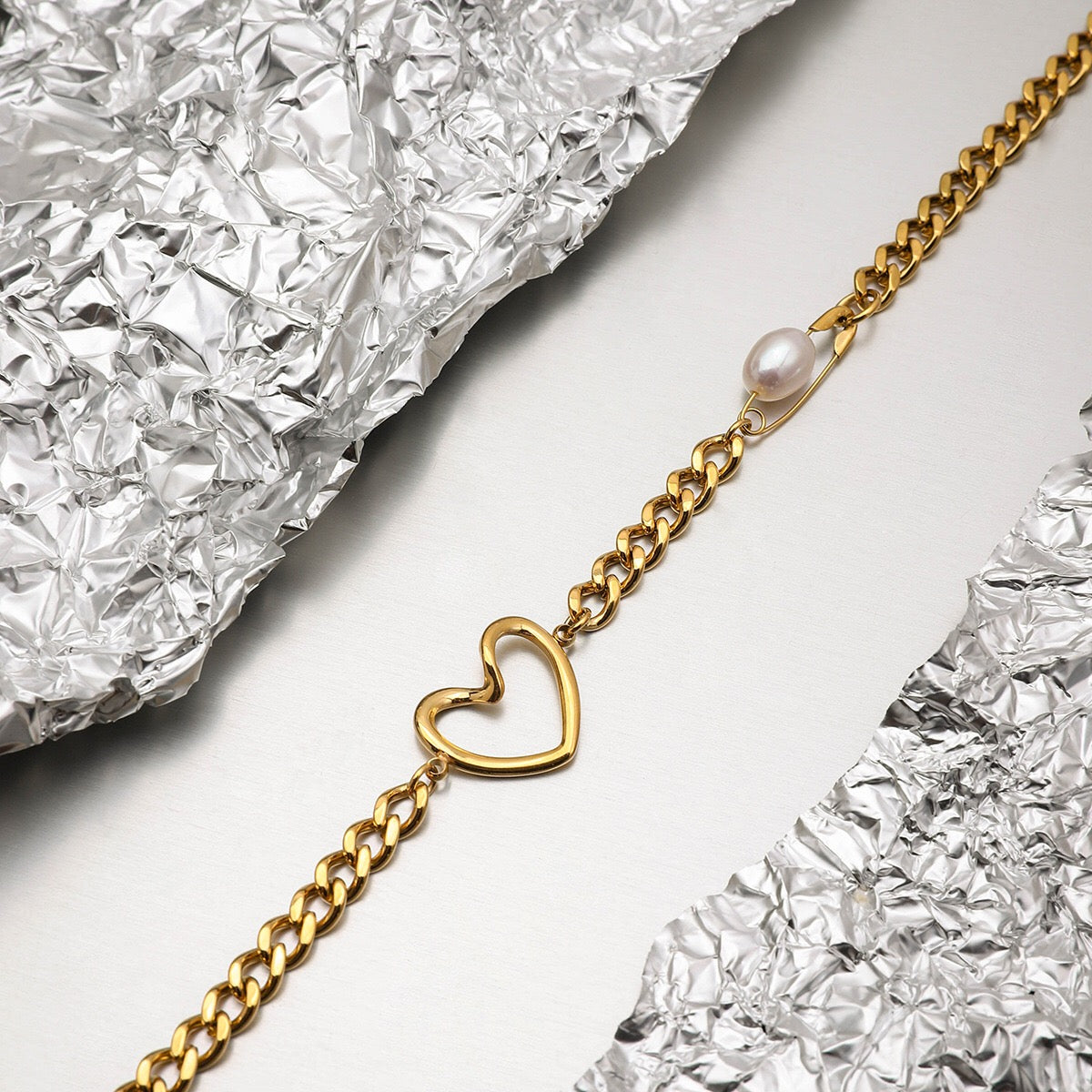 Turn heads with the 18K Gold Heart Safety Pin Pearl Cuban Curb Chain Necklaceāsuper chic, trendy, and utterly stunning. Waterproof and tarnish-free, itās designed to keep its gorgeous shine day after day. The perfect playful gift to wow your girlfriend, this necklace adds a bold twist to any outfit. Donāt waitāshop now and make every look unforgettable!