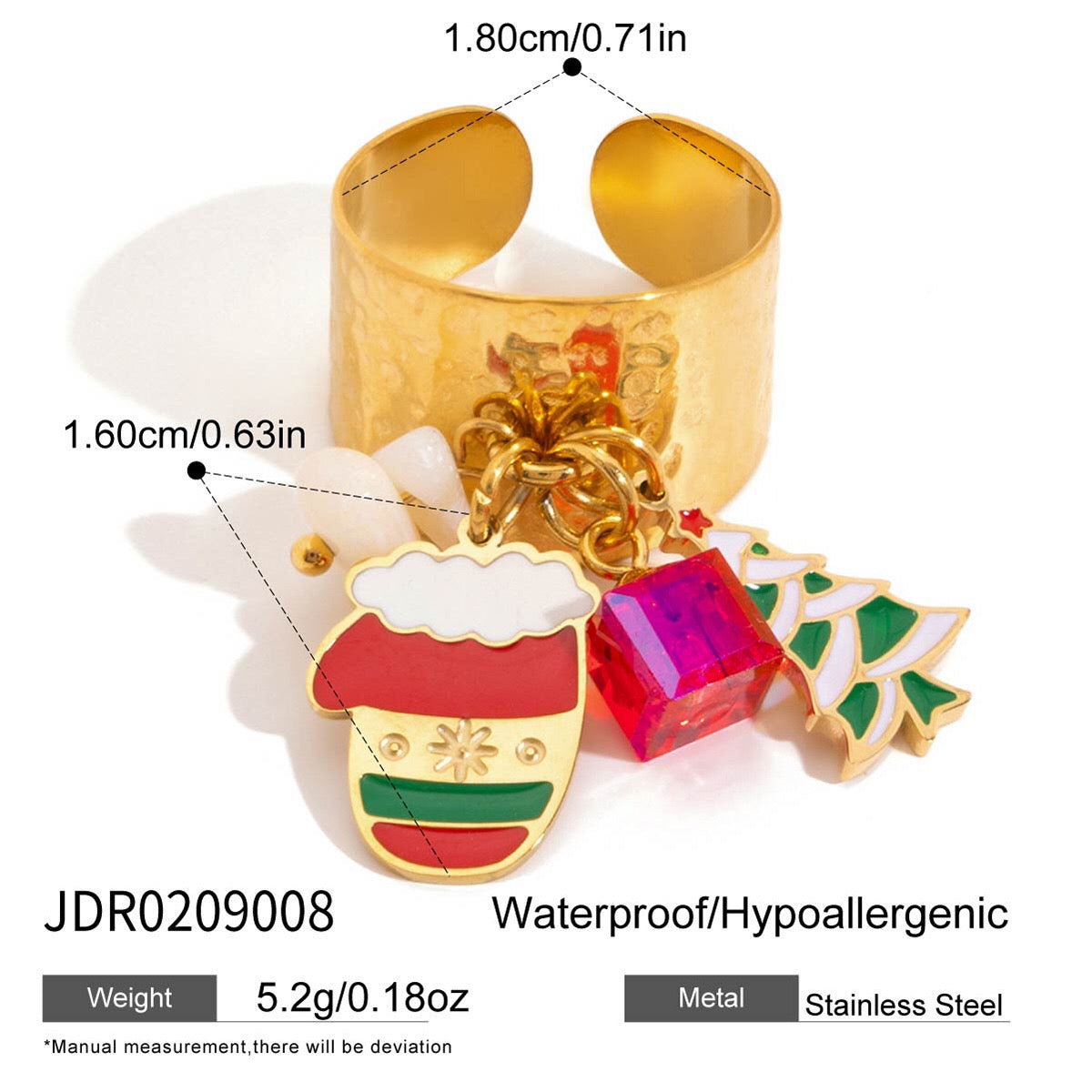 Get into the holiday spirit with this festive statement ring that's basically a must-have for the season! The Holiday Gleam charm band sparkles with chic, trendy details that capture all the magic of Christmas celebrations. Whether you're rocking it at holiday parties or keeping the festive vibes going all season long, this ring delivers serious style and joy. Waterproof and tarnish-resistant, it stays brilliant through all your holiday adventures and beyond. Perfect for gifting to your sisters and daughters—they'll love the playful elegance that makes every moment feel extra special. Shop now and spread the sparkle!