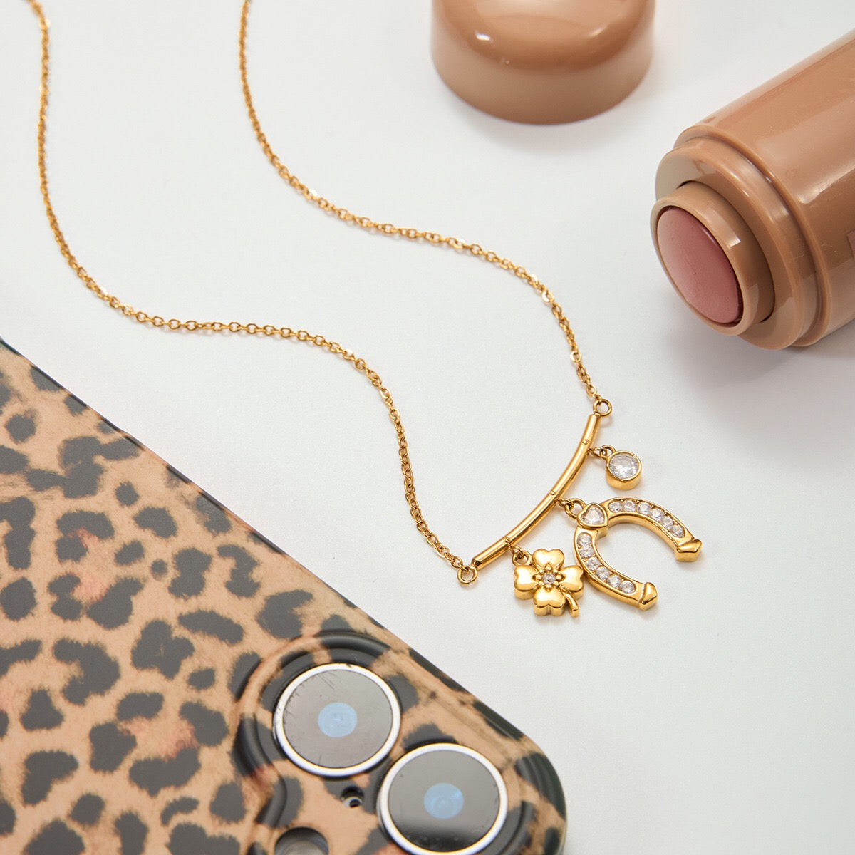 Add a touch of luck and style to any outfit with this chic 18K Gold Horseshoe Clover Lucky Charm Necklace Set. Featuring waterproof and tarnish-free layered herringbone chains, it’s a gorgeous must-have that sparkles all day. Perfect as a playful gift for your wife or to treat yourself—this set brings charm and trendiness in one beautiful package. Shop now and shine on!