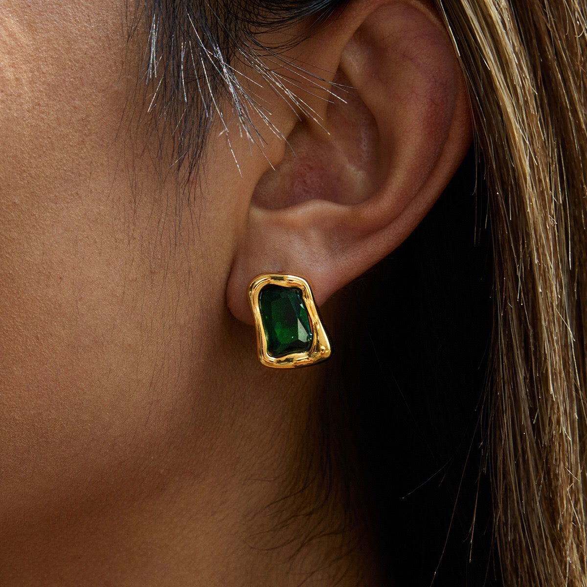 Step up your fall and winter style with the 18K Gold Liquid Form Statement CZ Stud Earrings. These super chic and trendy earrings offer a luxurious look without the hefty price, all while being waterproof and tarnish-free. Perfect for adding an elegant sparkle to any cold-weather outfit. Shop now and shine bright all season long!
