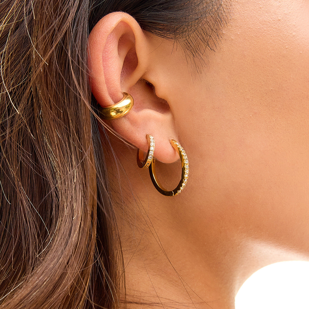 18K Gold Minimalist Bling Huggie Earrings Ear Cuffs Set