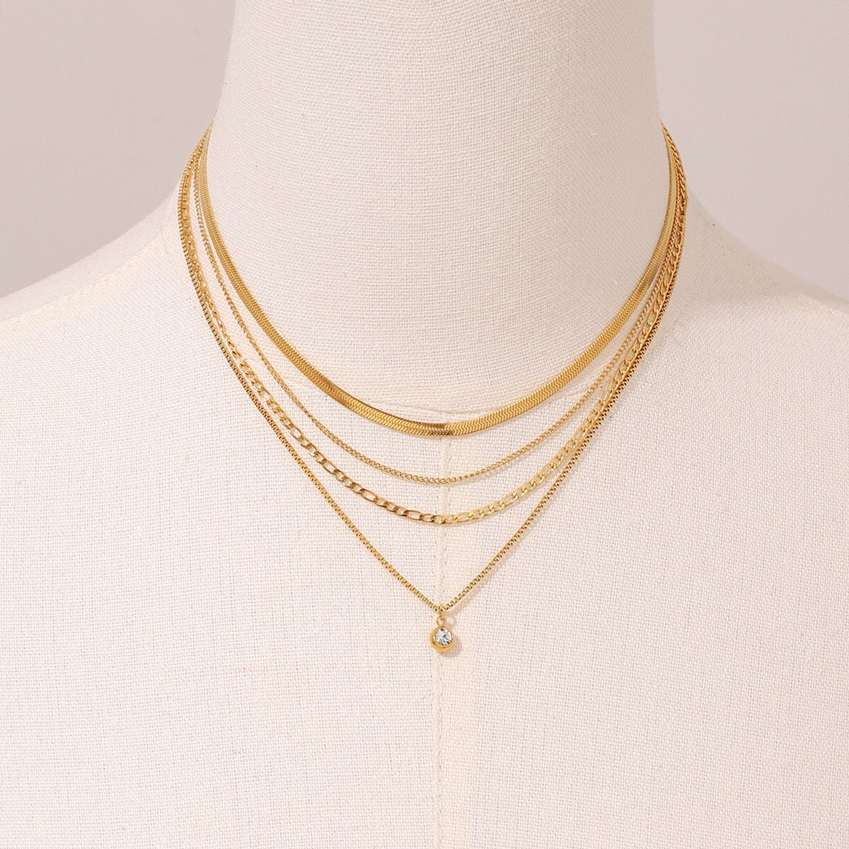 18K Gold North Star Herringbone Snake Chain Figaro Layered Necklace Set