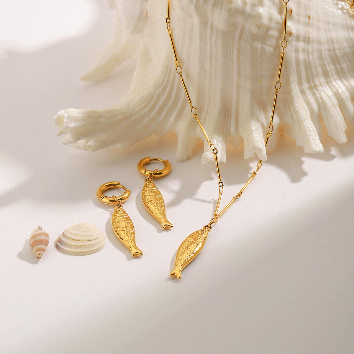Dive into style with our 18K Gold Ocean Themed Fish Hoop Earrings. These chic and trendy huggies are perfect for summer, featuring anti-tarnish and waterproof properties for a luxury look that lasts. Give the gift of fashionable fun - shop now!