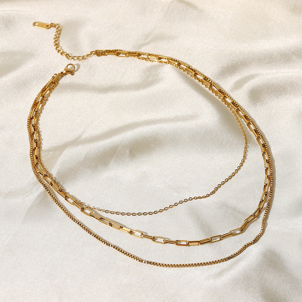 Add a touch of trendy chic to your everyday style with our 18K Gold Paperclip Layered Necklace. This must-have accessory is already layered for easy wear and will elevate any outfit. Don't hesitate, shop now and stay on-trend!