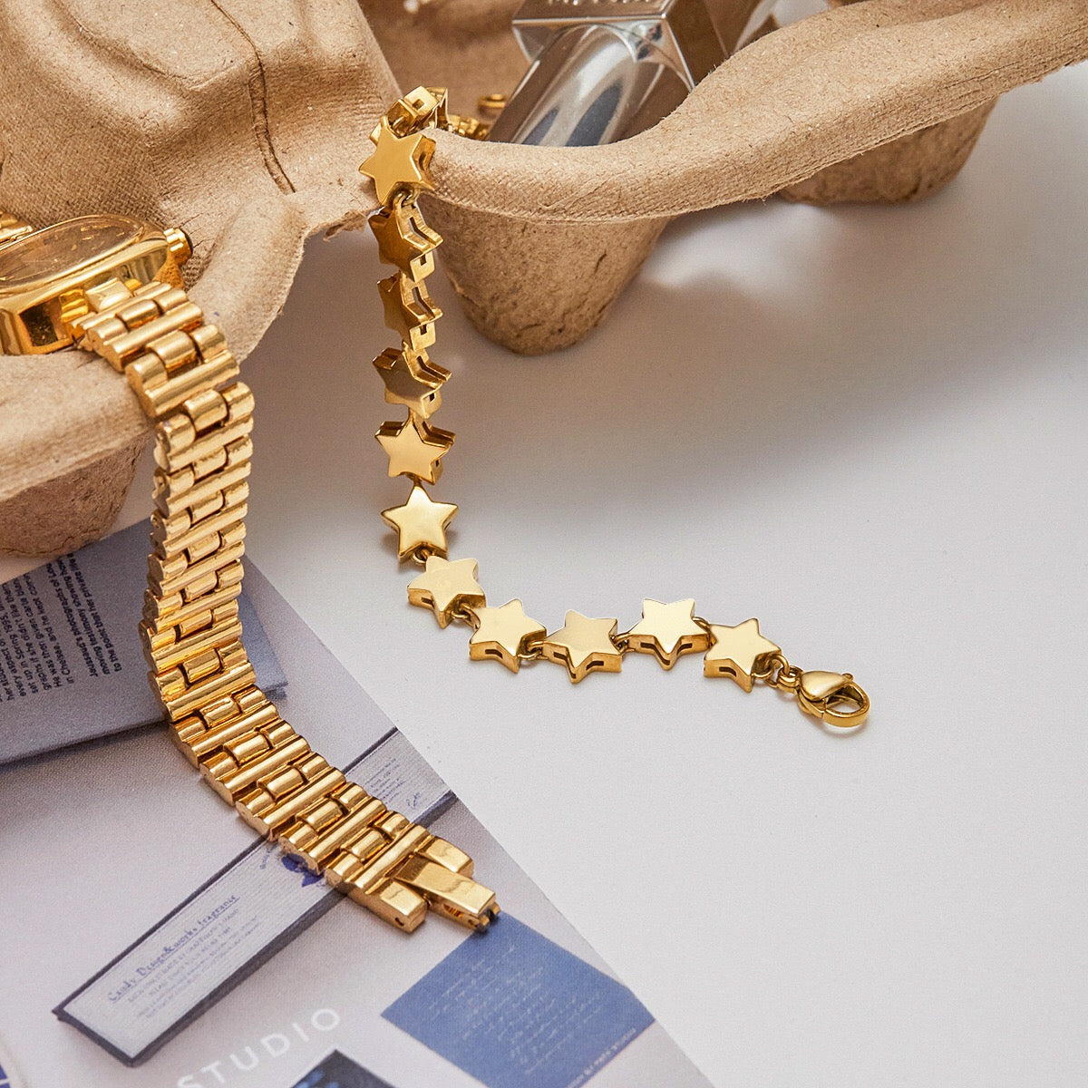 18K Gold Pink Dream Star Tennis Chain Bracelet Stack