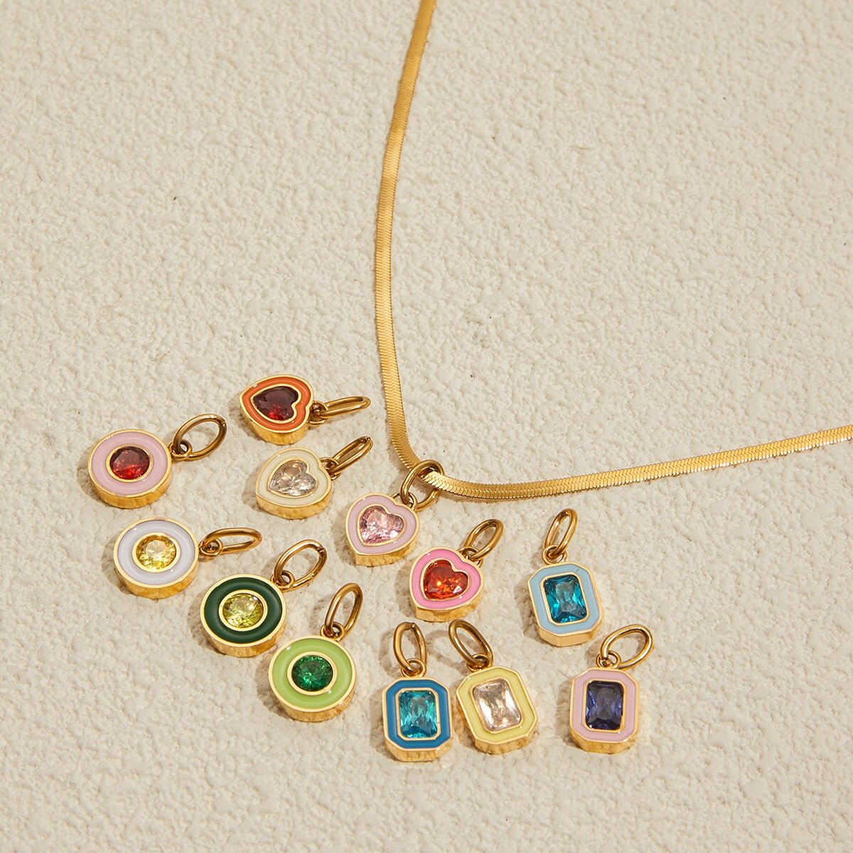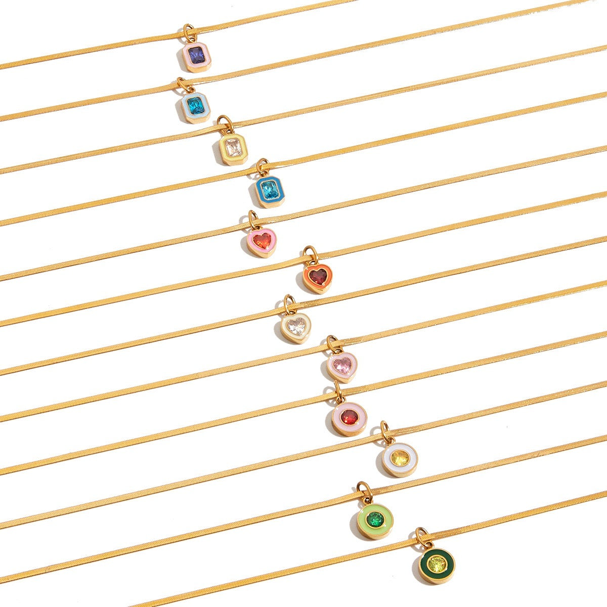 Celebrate every month with the 18K Gold Playful Color Birthstone Pendant Herringbone Snake Chain Necklace. This chic and trendy piece features colorful, playful designs that make it a very cool gift for your loved ones. Waterproof and tarnish-free, it’s made to shine through every adventure. Shop now and add a splash of joy to any outfit!