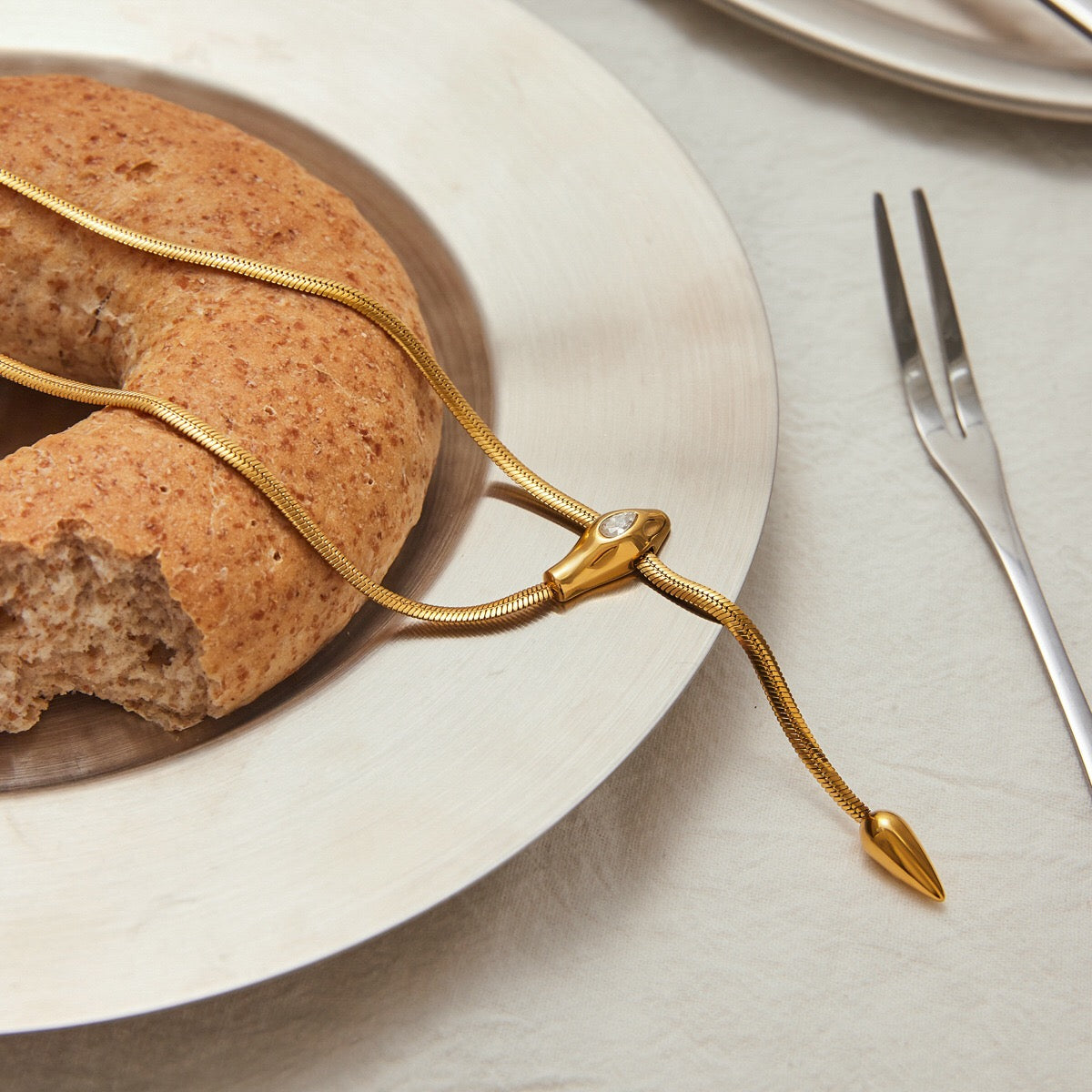 18K Gold Queen Vibe Snake Y Shape Chain Necklace Set