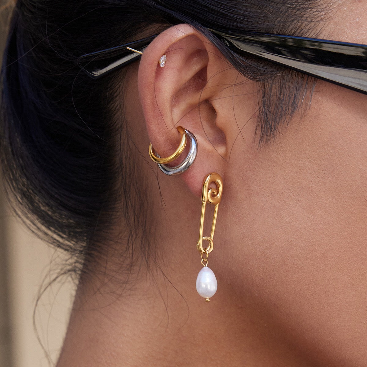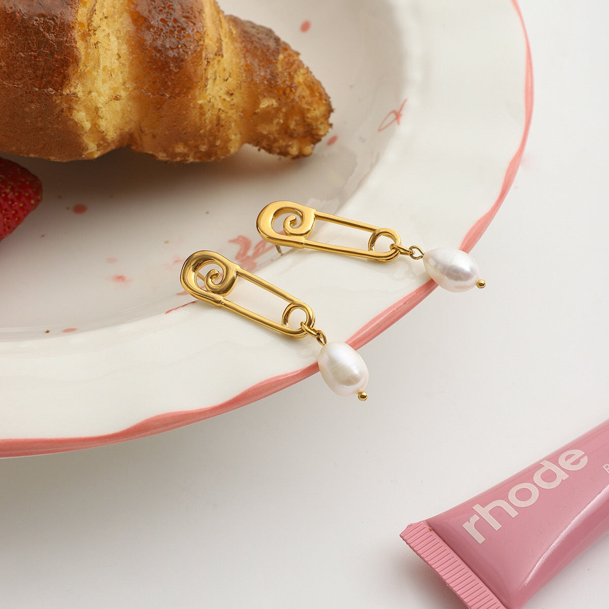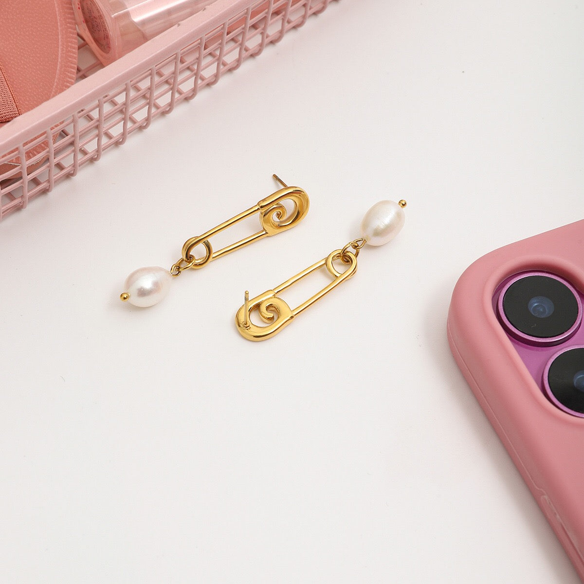 Add a dash of edge and elegance with these 18K Gold Safety Pin Pearl Statement Dangle Stud Earrings. Waterproof and tarnish-free, they keep your style shining no matter the adventure. Perfectly playful and a must-try for fashion lovers, they make an unforgettable gift for your girlfriend. Elevate every look and shop now to sparkle with confidence!