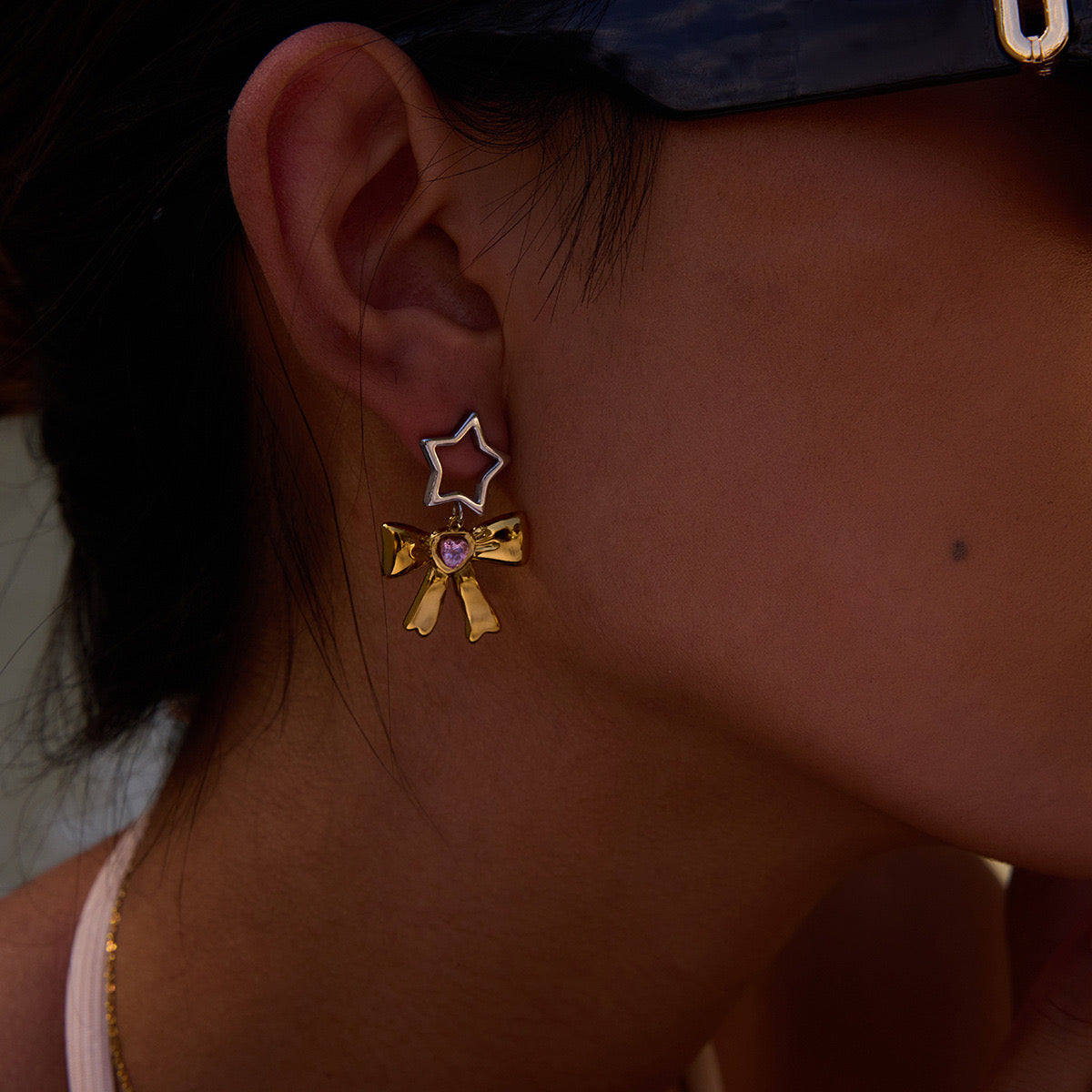 These 18K Gold Silver Star Pink Jewel Bow Statement Stud Dangle Earrings bring a super chic Y2K vibe you won’t want to miss. Available in both gold and silver, they’re the perfect trendy must-have for fashion lovers. Waterproof and tarnish-free, they make a fabulous gift for your best friends and sisters. Shop now and add playful sparkle to any look!