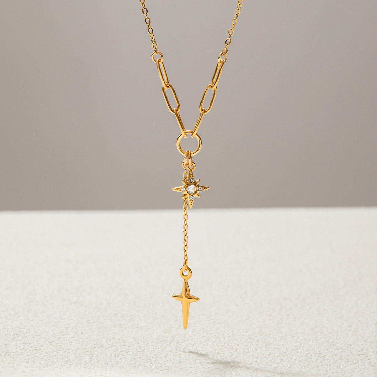 Shine every day with the 18K Gold Starry Y Shape Pendant Tennis Chain Paperclip Layered Necklace Set. Trendy, chic, and super luxury looking, itās perfect for daily wear, office days, or special events. Waterproof and tarnish-free, this must-have piece makes an ideal gift for your wife. Shop now and add a playful sparkle to any outfit!