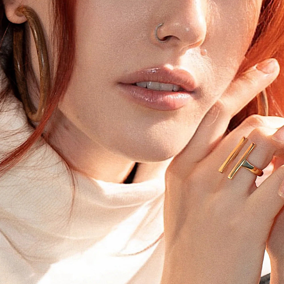 Elevate your style with the 18K Gold Statement T Ring—luxury looks that fashion lovers can’t resist. Waterproof and tarnish-free, this must-have ring makes a stunning gift for your girlfriend or a dazzling treat for yourself. Don’t wait—shop now and shine bright!