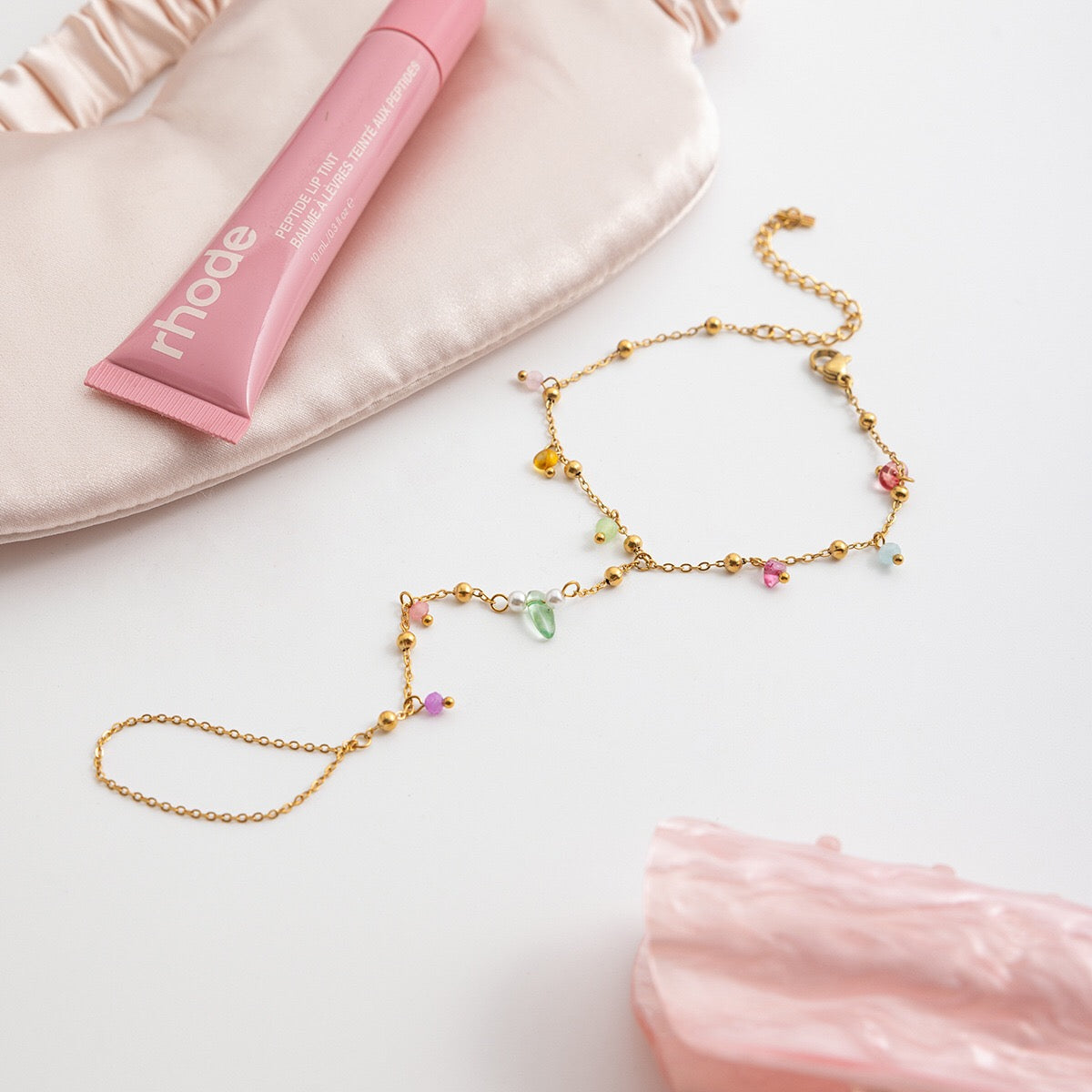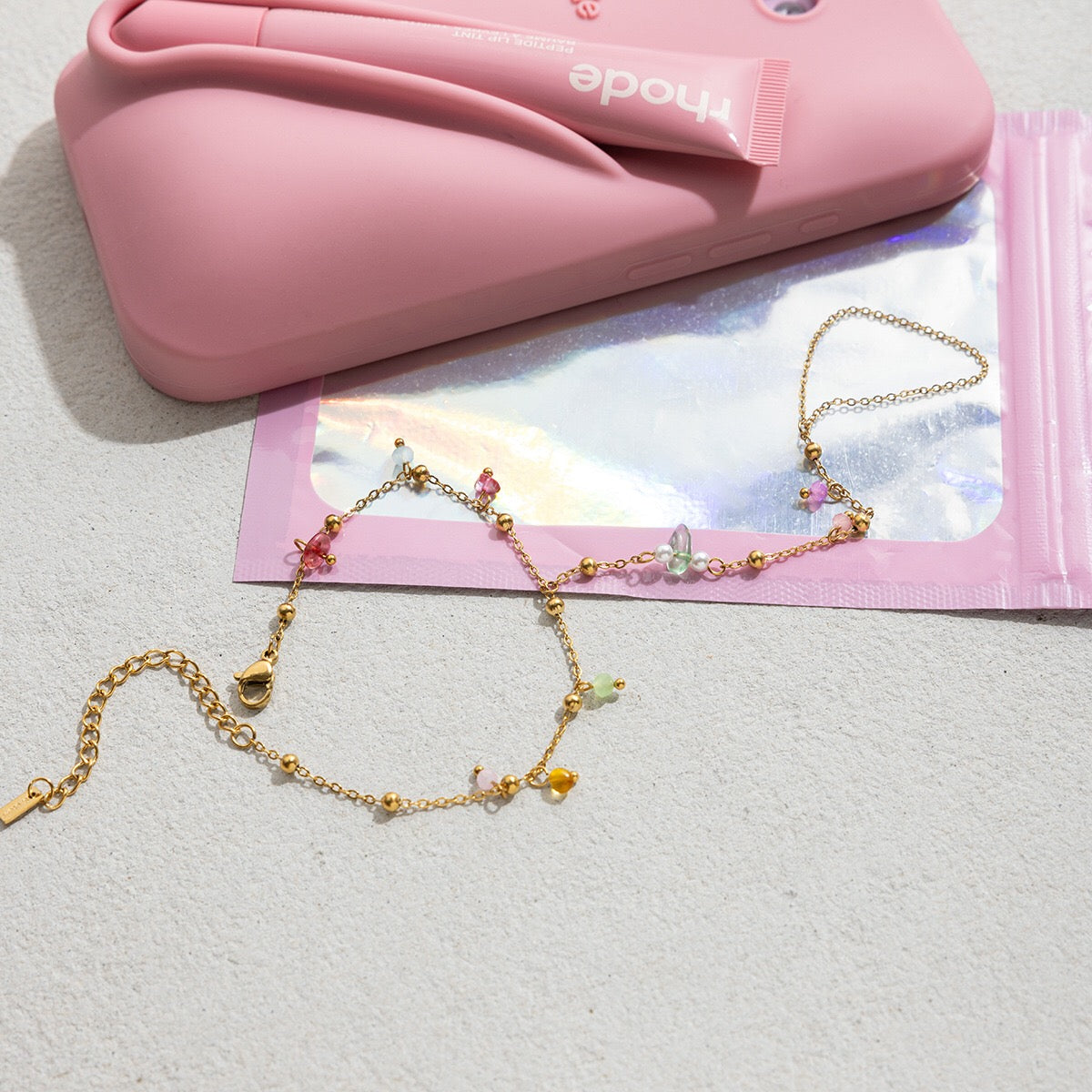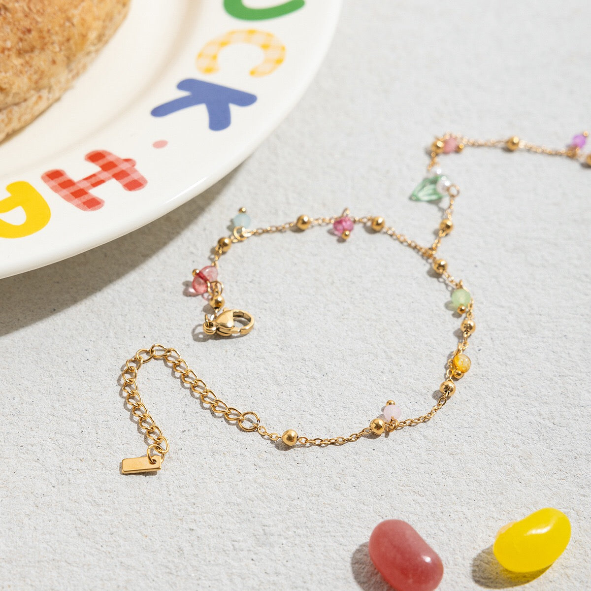 18K Gold Waterproof Pastel Color Beads Dainty Hand Chain Bracelet