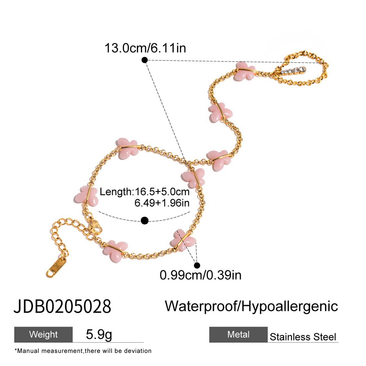 18K Gold Waterproof Pink Butterfly Trendy Hand Jewelry Chain Bracelet