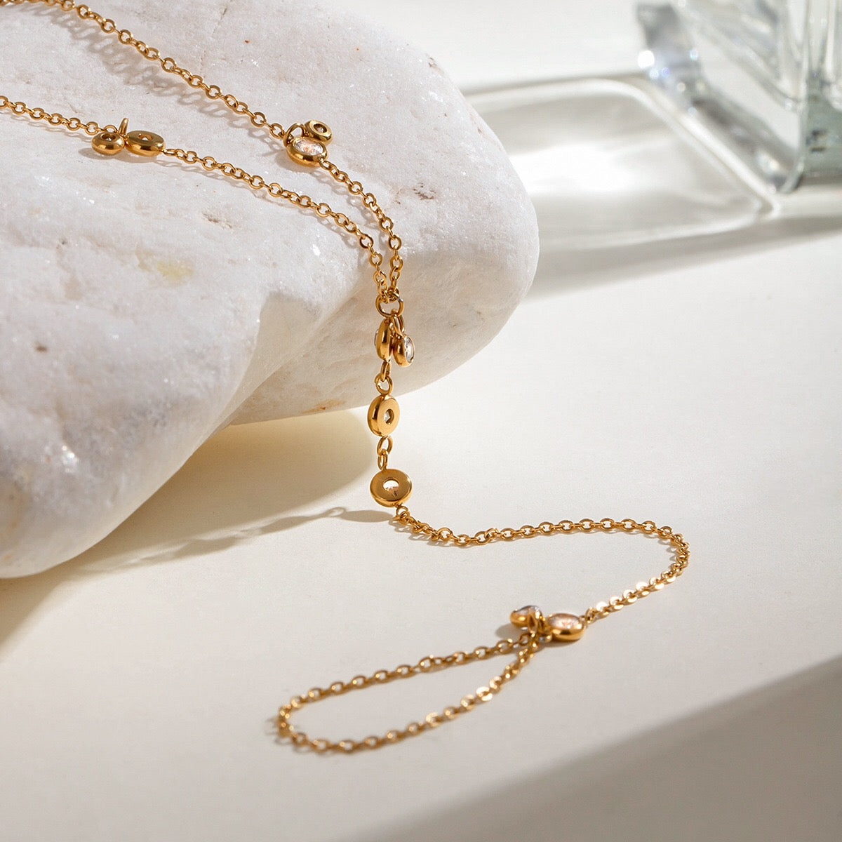 18K Gold Waterproof Trendy Bejeweled Hand Chain Bracelet